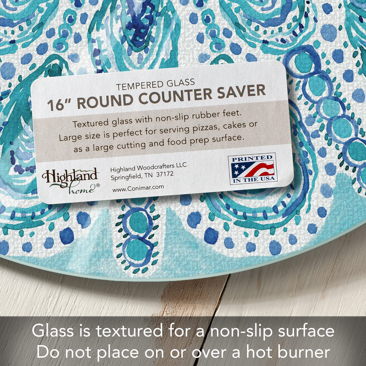Amazon Com Counterart Ocean Fantasy 4mm Heat Tolerant Round Tempered Glass Cutting Board 16 Round Manufactured In The Usa Food Preparation Board Cake Plate Pizza Stand Home Kitchen